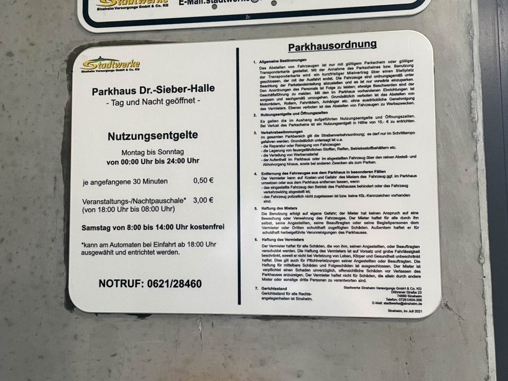 Parkhaus direkt an der Stadthalle und Parkplatz ca 200 Meter entfernt.